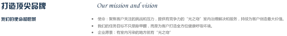 2012年公司斥巨資從德國專業空氣研發(fā)實驗室引進銳鈦型納米二氧化鈦研發(fā)成果,同時與國內知名高校進行合作,成立“光之吻”品牌,致力于為人類創作純凈,健康的呼吸環(huán)境,成為你身邊的健康衛士,實現365天健康呼吸的夢想,目前是同類產品中最有競爭力的品牌之一。